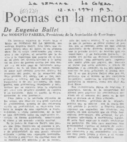 Poemas en La menor [artículo] Modesto Parera.
