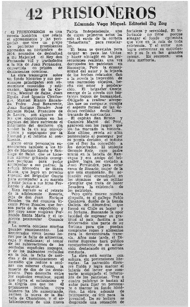 Autores chilenos - Vega Miquel, Edmudo - 42 prisioneros