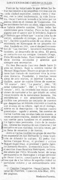 En 1977: centenario de tres escritores chilenos [artículo] Modesto Parera.