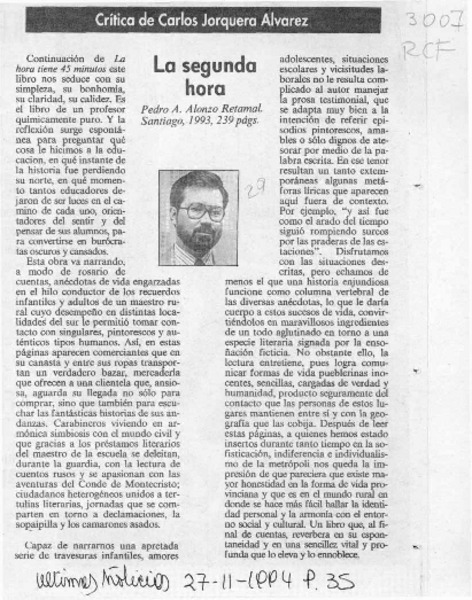 La segunda hora [artículo] Carlos Jorquera Alvarez.