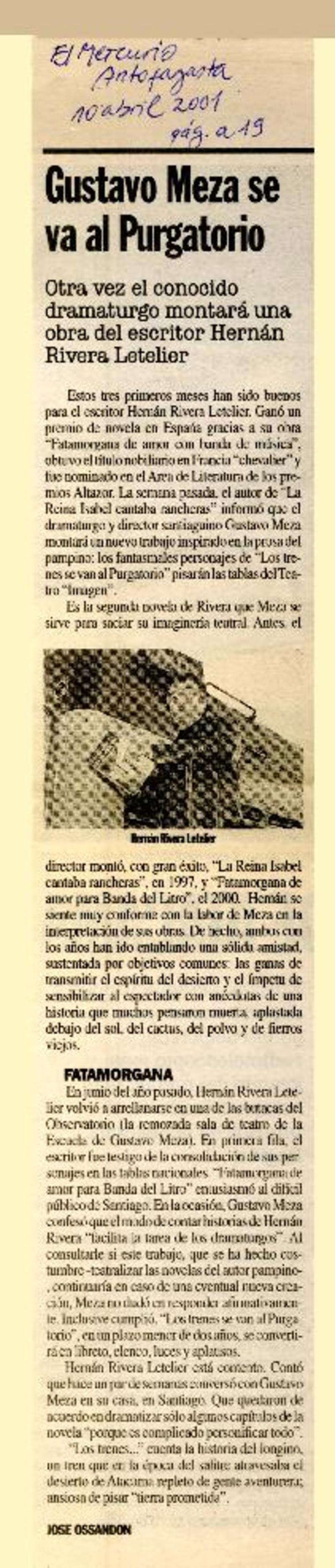Gustavo Meza se va al purgatorio [artículo] José Ossandón.