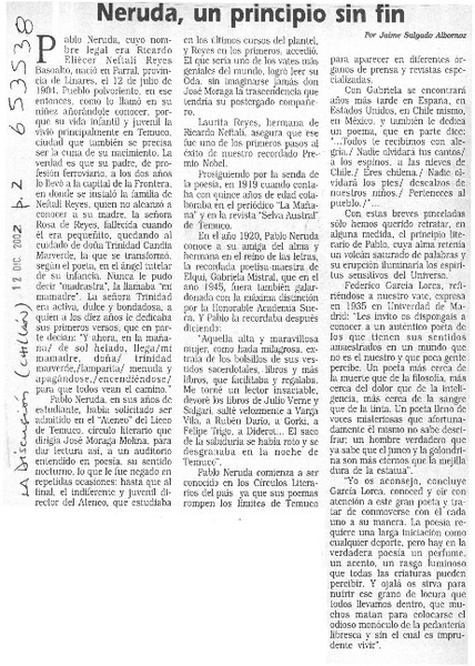 Neruda, un principio sin fin [artículo] Jaime Salgado Albornoz
