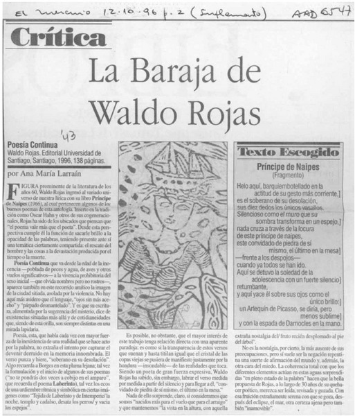 La baraja de Waldo Rojas [artículo] Ana María Larraín.