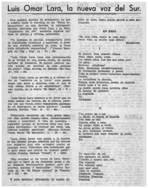 La visita de tres escritores [artículo] Omar Lara.