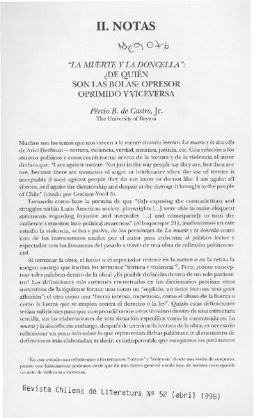 "La muerte y la doncella", ¿de quién son las bolas? opresor oprimido y viceversa [artículo] Pércio B. de Castro, Jr.