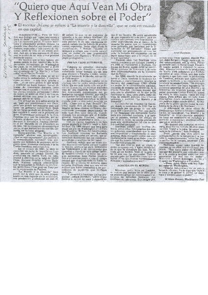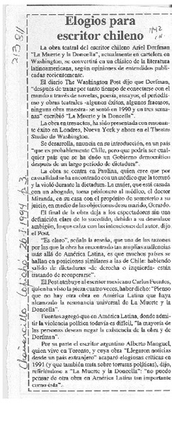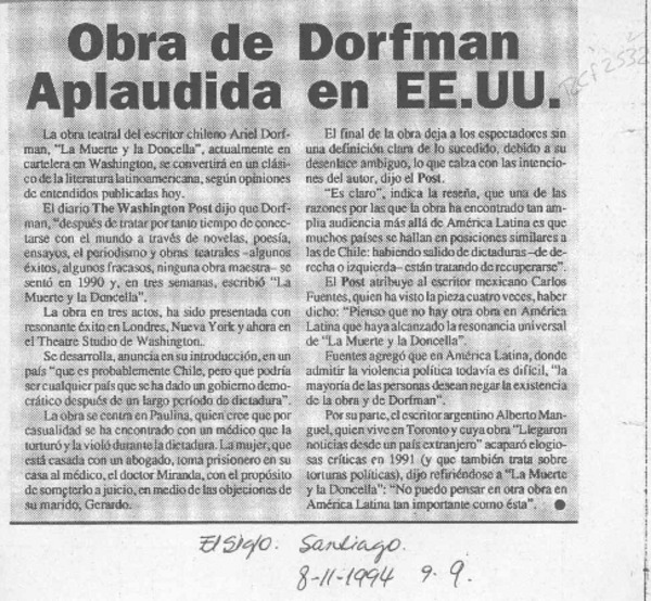 Obra de Dorfman aplaudida en EE. UU. [artículo].