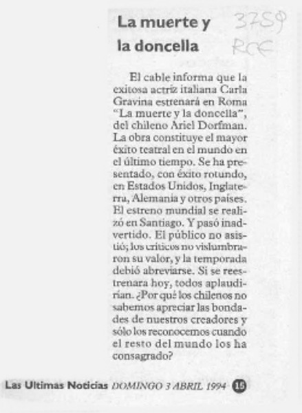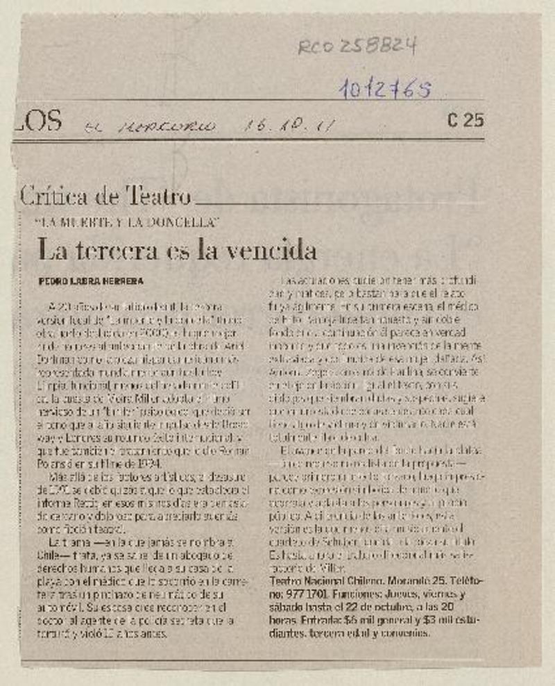 "La muerte y la doncella", reparando una injusticia [artículo] Pedro Labra Herrera.