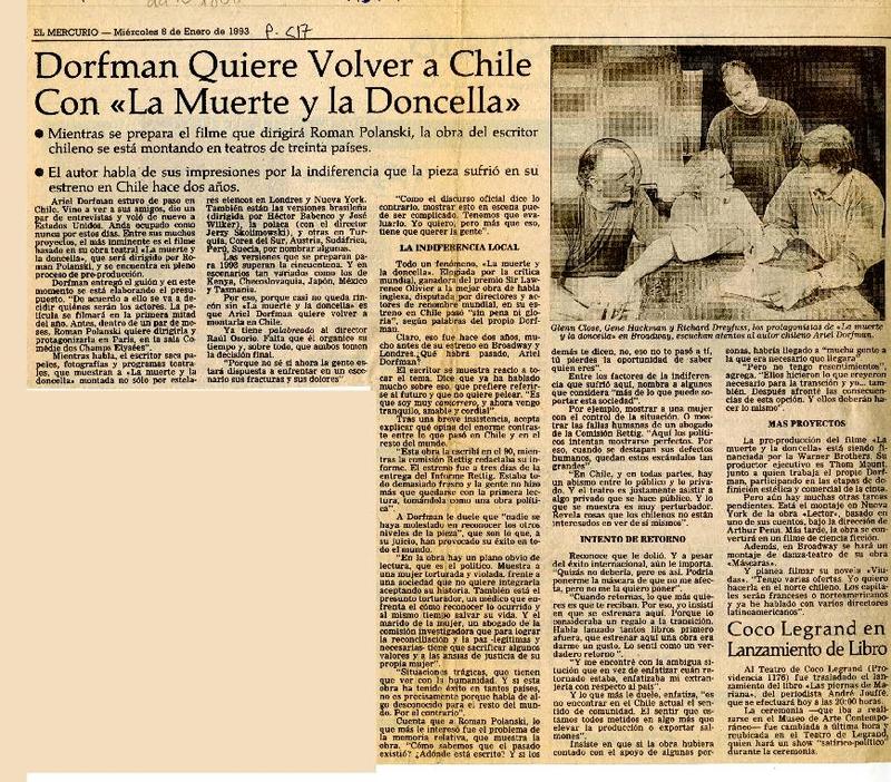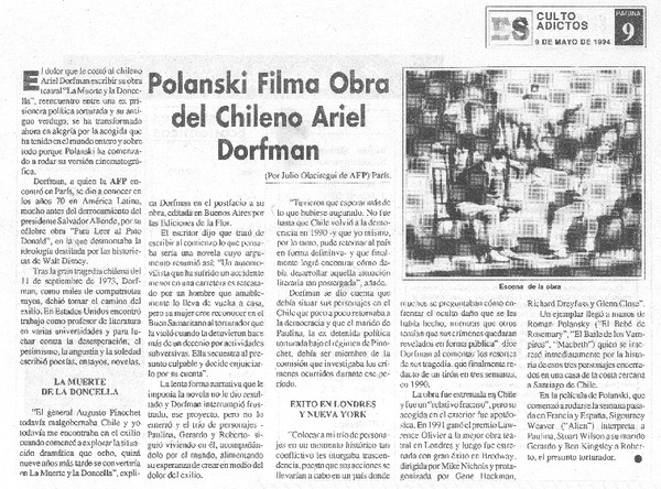 Polanski filma obra del chileno Ariel Dorfman [artículo] Julio Olaciregui.