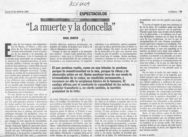 La muerte y la doncella [artículo] Raúl Zurita.