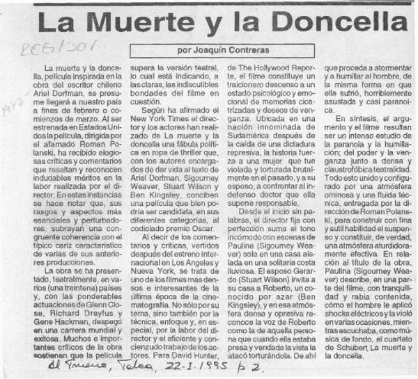La muerte y la doncella [artículo] Joaquín Contreras.