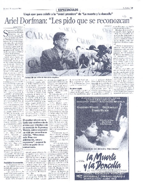 Dorfman habla de "La muerte y la doncella" [artículo]