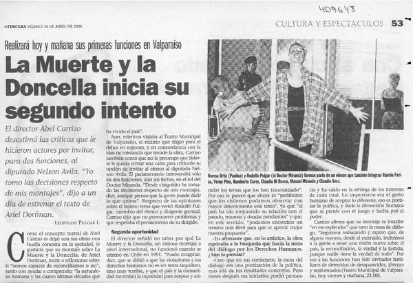La muerte y la doncella inicia su segundo intento [artículo] Leopoldo Pulgar I.
