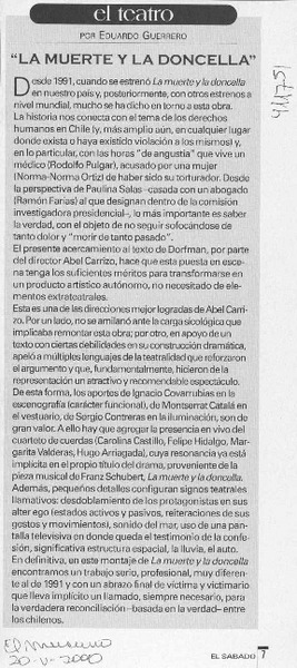 "La muerte y la doncella" [artículo] Eduardo Guerrero