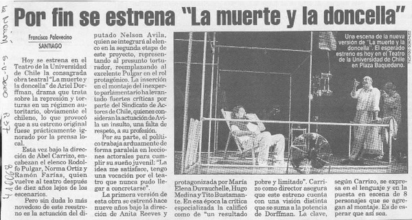 Por fin se estrena "La muerte y la doncella" [artículo] Francisca Palavecino