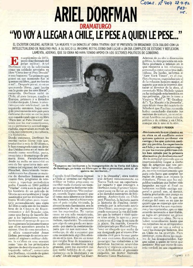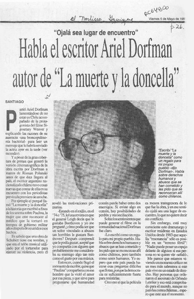 Habla el escritor Ariel Dorfman autor de "La muerte y la doncella" [artículo].