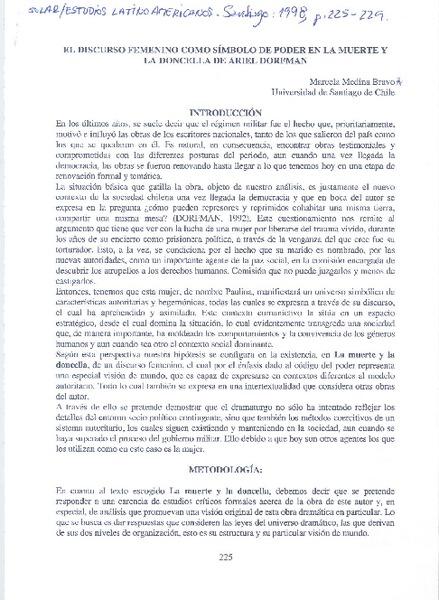 El discurso femenino como símbolo de poder en La muerte y la doncella de Ariel Dorfman [artículo] Marcela Medina Bravo