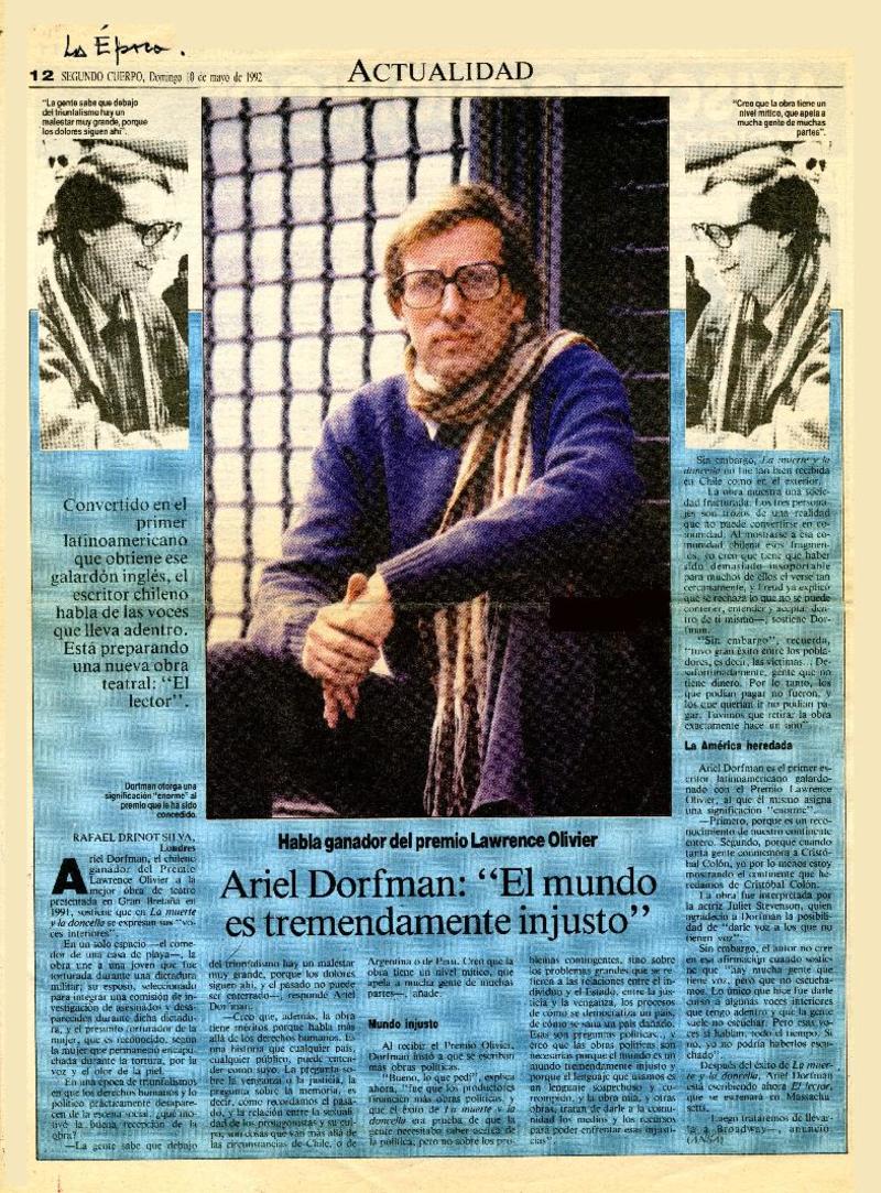 Ariel Dorfman, "El mundo es tremendamente injusto" [artículo] Rafael Drinot Silva.