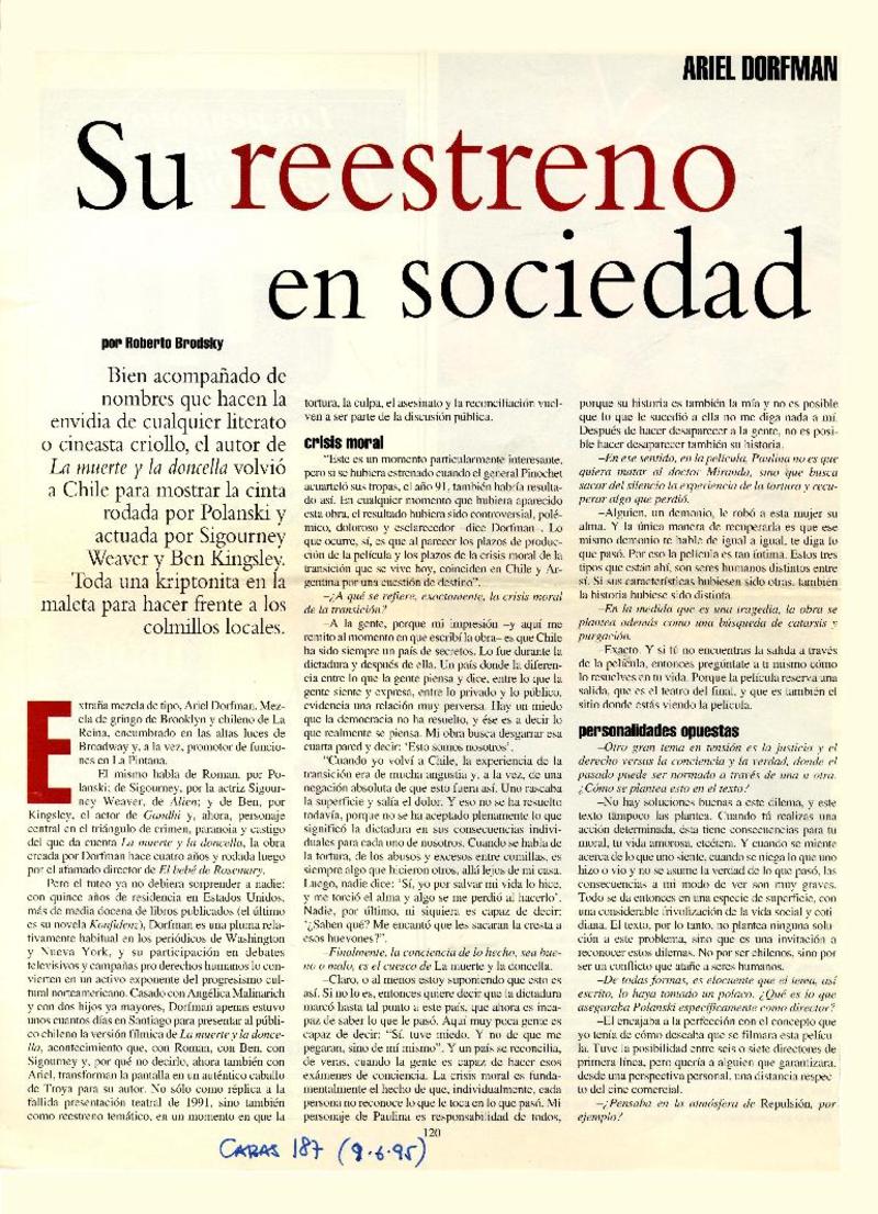 Su reestreno en sociedad [artículo] Roberto Brodsky.