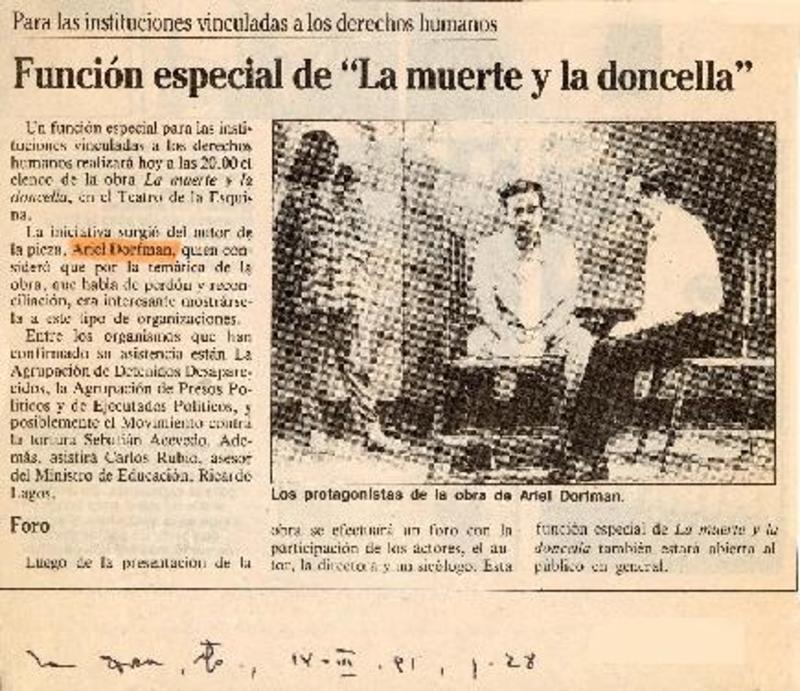 Función especial de "La muerte y la doncella". [artículo]