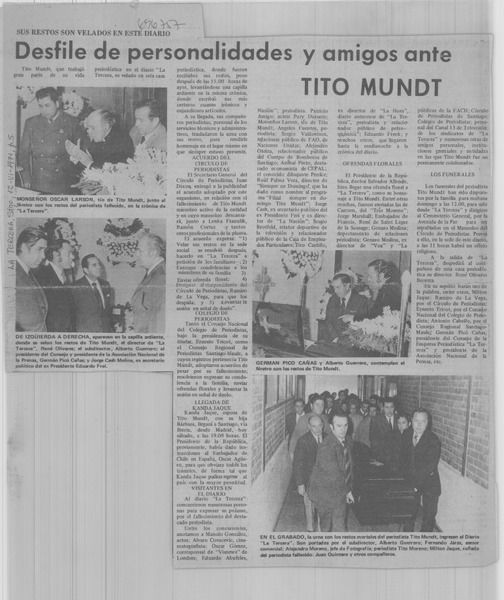 Desfile de personalidades y amigos ante Tito Mundt. [artículo]