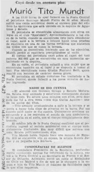Accidente no suicidio fue muerte de Mundt. [artículo]