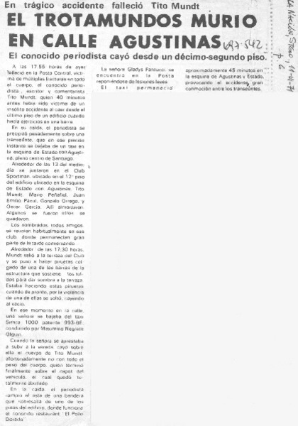 En trágico accidente murió famoso periodista Tito Mundt. [artículo]