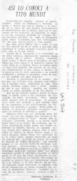 Asi lo conocí a Tito Mundt [artículo] Abelardo Gutiérrez T.