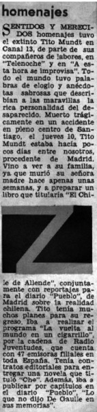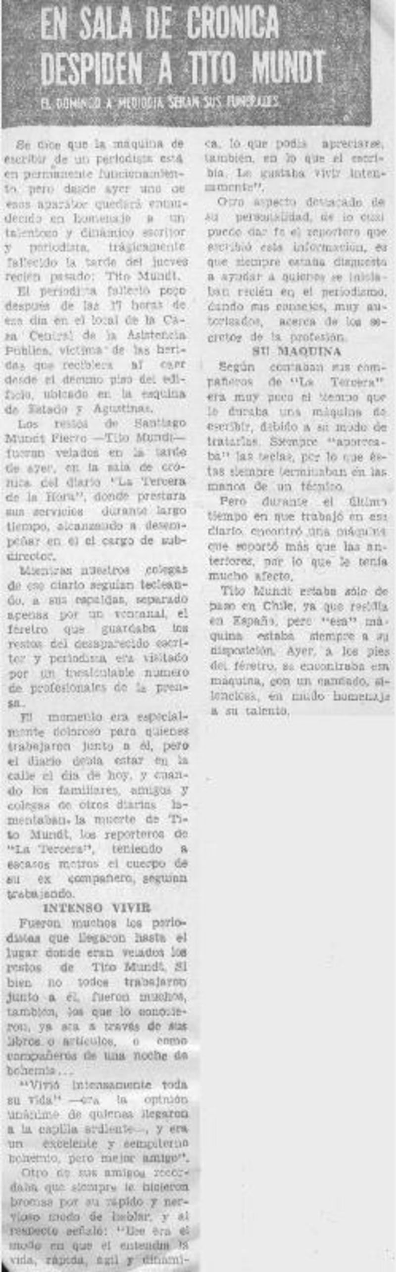 En sala de crónica despiden a Tito Mundt. [artículo]
