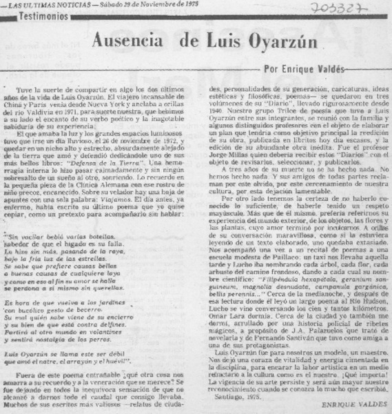 Ausencia de Luis Oyarzún [artículo] Enrique Valdés.