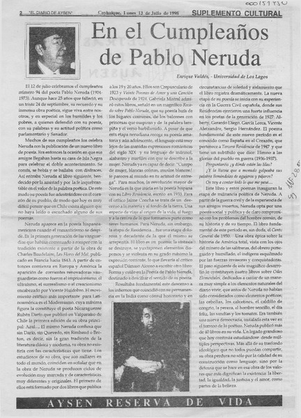 En el cumpleaños de Pablo Neruda [artículo] Enrique Valdés.