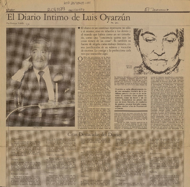 El diario íntimo de Luis Oyarzún [artículo] Enrique Valdés.