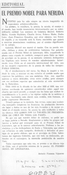 El Premio Nobel para Neruda [artículo] Antonio Fiamma Vigueras.