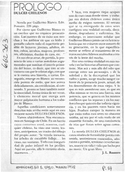 Autores chilenos - Blanco, Guillermo - Dulces chilenos