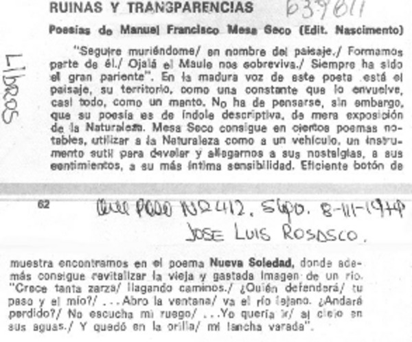 Autores chilenos - Mesa Seco, Manuel Francisco - Ruinas y transparencias