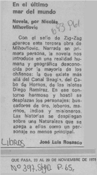 En el último mar del mundo [artículo] José Luis Rosasco.