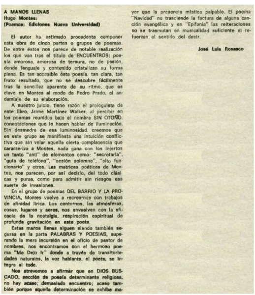 Obra poética de Hugo Montes [artículo] José Luis Rosasco.