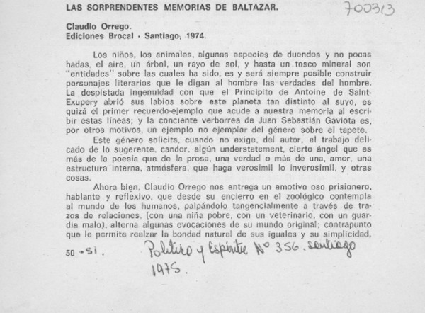 Las sorprendentes memorias de Baltazar [artículo] José Luis Rosasco.