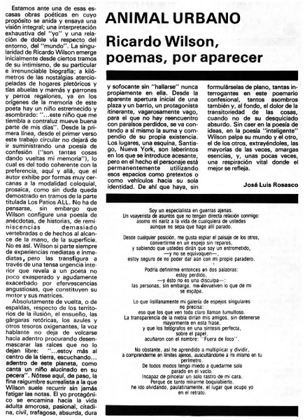 Autores chilenos - Animal urbano - Wilson, Ricardo