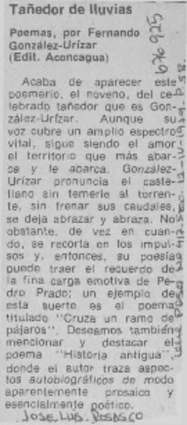 Tañador de lluvias [artículo] José Luis Rosasco.