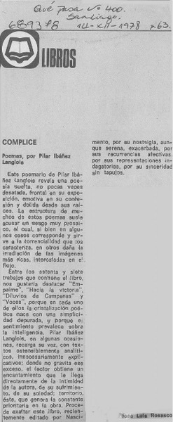 Autores chilenos - Ibáñez Langlois, Pilar - Cómplice