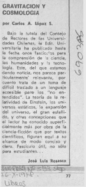 Gravitación y cosmología [artículo] José Luis Rosasco.