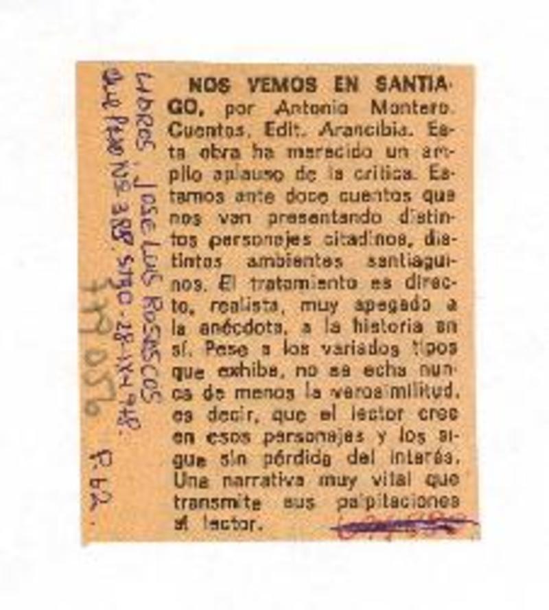 Autores chilenos - Montero Abt, Antonio - Nos vemos en Santiago