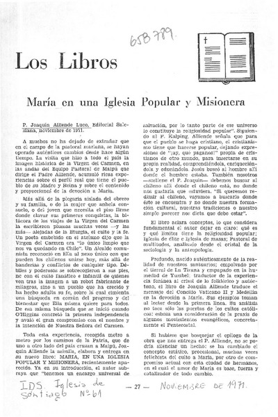 María en una iglesia popular y misionera - Alliende Luco, Joaquín - Autores chilenos