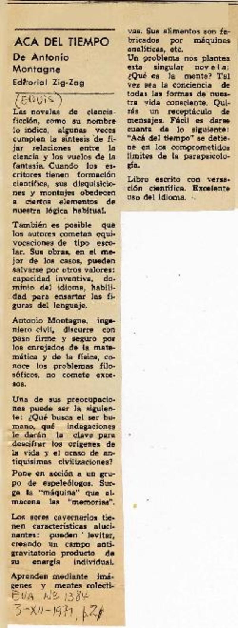 Autores chilenos - Acá del tiempo - Montagne, Antoine