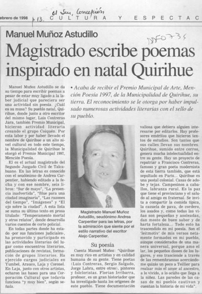 Magistrado escribe poemas inspirado en natal Quirihue [artículo].