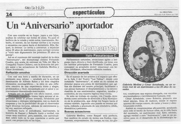 Un "Aniversario" aportador [artículo] Italo Passalacqua C.
