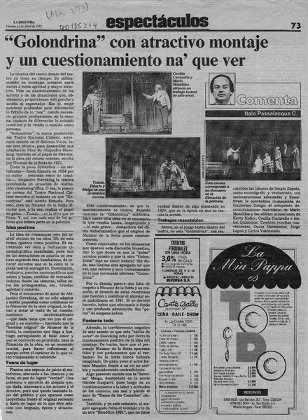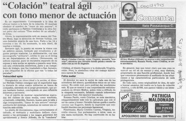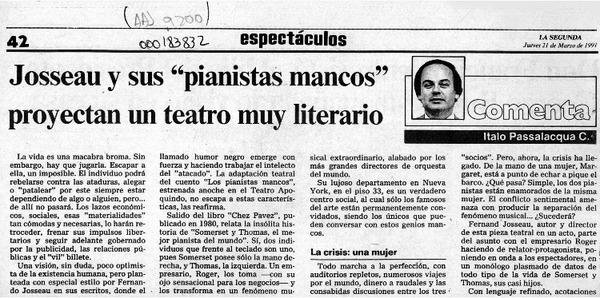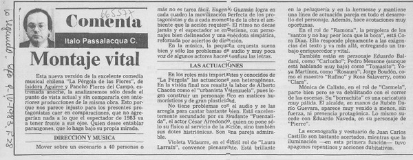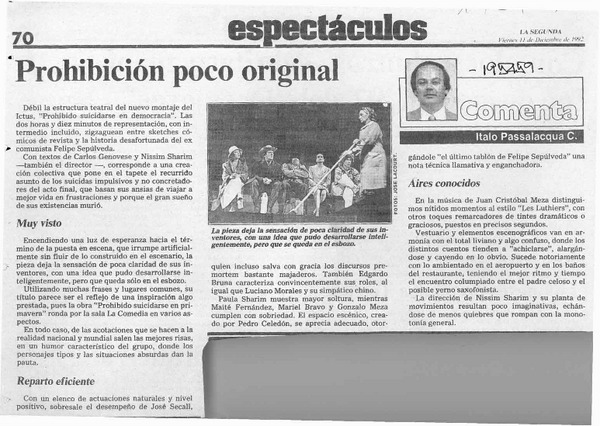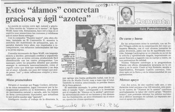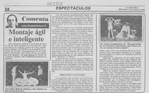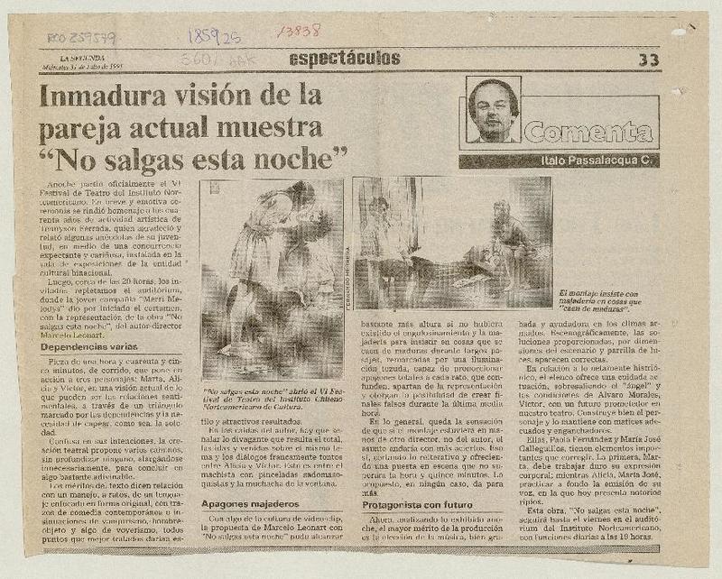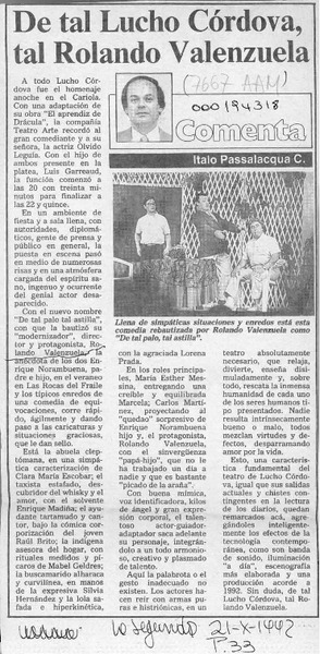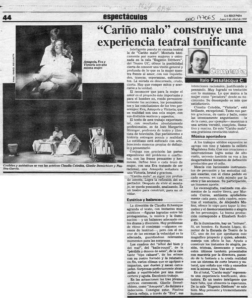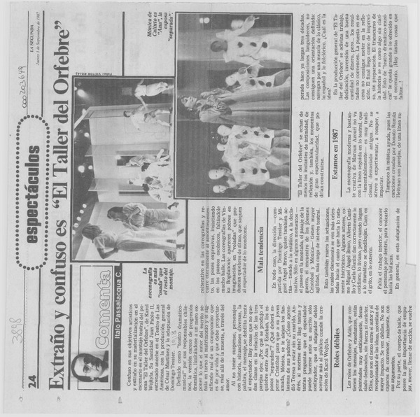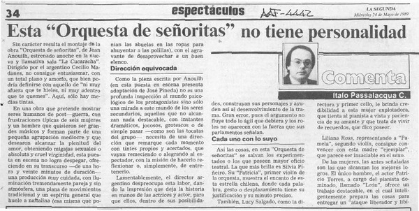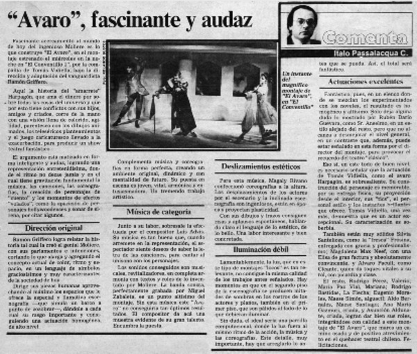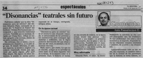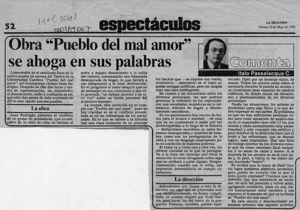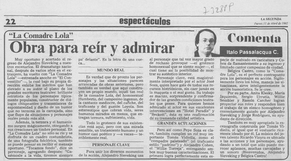 Una obra teatral muy interesante [artículo] Italo Passalacqua C.