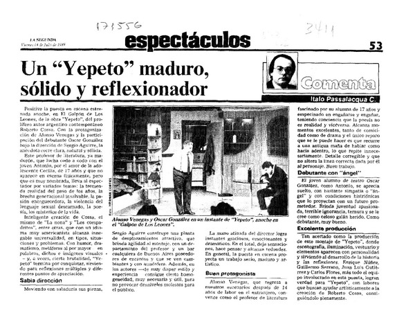 Un "Yepeto" maduro, sólido y reflexionador [artículo] Italo Passalacqua C.