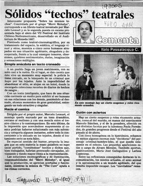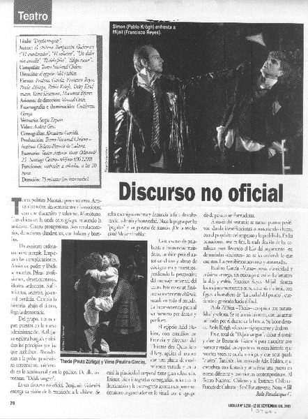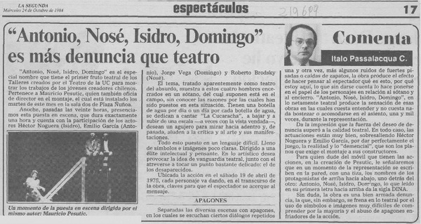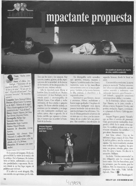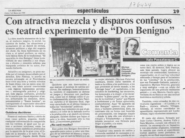 Con atractiva mezcla y disparos confusos es teatral experimento de "Don Benigno" [artículo] Italo Passalacqua C.