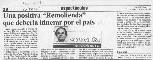 Una positiva "Remolienda" que debería itinerar por el país [artículo] Italo Passalacqua C.